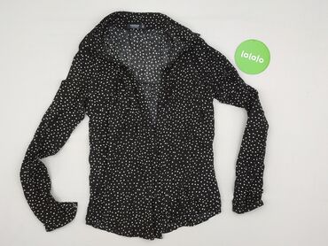 Bluzka damska Reserved, rozmiar 36 - Krój: luźny, zapinana na guziki z przodu - Kołnierzyk: klasyczny stójkowy - Rękawy: krótkie, szerokie, lekko falbaniaste - Wzór: białe tło w granatowe kropki (...