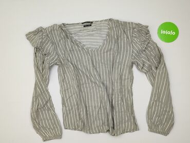 Bluzka damska RESERVED YFL - Kolor: ecru/śmietankowy z delikatnymi, połyskującymi pionowymi paseczkami - Fason: lekko luźny, dekolt w kształcie litery V - Rękawy: długie, zakończone gumką; przy ra...