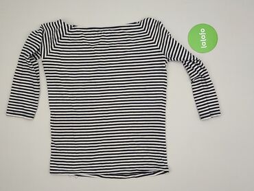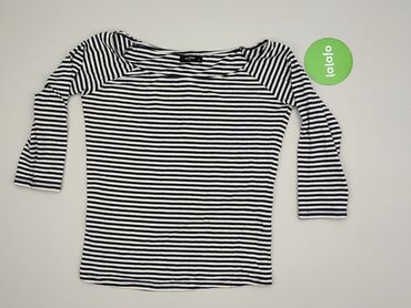 Bluzka damska Reserved YFL - Rozmiar: S - Fason: dopasowany, marynarski - Wzór: granatowo-białe poziome paski - Rękaw: 3/4 - Dekolt: łódka (szeroki) - Materiał: miękka, elastyczna dzianina bawełni...
