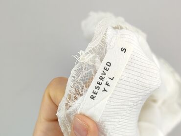 Bluzka hiszpanka Reserved YFL - Model: off-shoulder (hiszpanka) z szeroką falbaną wokół dekoltu - Kolor: biały z granatowym, ażurowym haftem kwiatowym na falbanie - Materiał: 100% bawełna (metka n...
