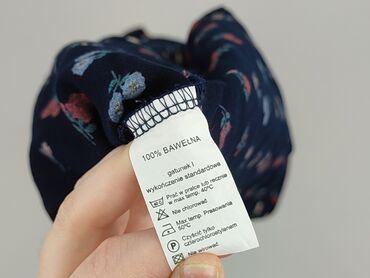 Bluzka damska w kwiaty - Krój: prosty, z zaokrąglonym dekoltem - Rękawy: długie, rozszerzane typu dzwonek, z wiązaniami przy mankietach - Wzór: gęsty, kwiatowy nadruk na granatowym tle (białe, jas...