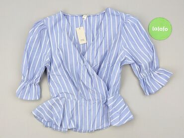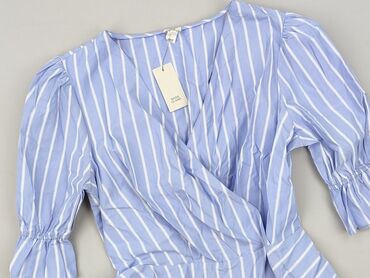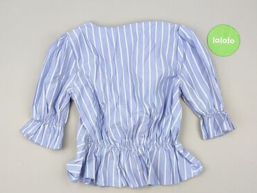 Bluzka damska River Island w biało‑błękitne pionowe pasy. - Krój: luźny, z krótkim rękawem typu kimono/cap sleeve - Dekolt: w kształcie litery V - Detale: ozdobne metalowe guziki na ramionach, zao...