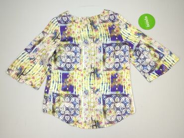 Bluzka damska Gosia – rozmiar L - Fason: prosta, luźniejsza, z długim rękawem - Dekolt: okrągły - Wzór: geometryczny, patchworkowy; kolory m.in. granat, róż, fuksja, biały, beż, błękit; elementy w...Bluzka R’Lattore – rozmiar 38