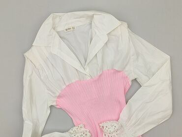 - Fason 2w1: góra jak koszula z kołnierzykiem i długim rękawem, dopasowany różowy, prążkowany gorsetowy środek