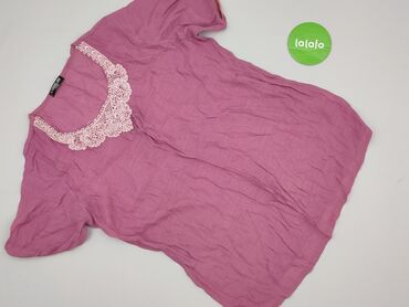 Bluzka damska M&H New Collection, rozmiar z metki XL/XXL. - Kolor: różowy - Fason: prosta bluzka z krótkim rękawem - Przód i rękawy z ażurowej koronki w kwiatowy wzór; dół wykończony ozdobną falą ...