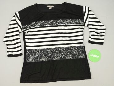 Bluzka damska w paski z koronką - Krój: prosty, lekko wydłużony - Rękaw: 3/4 - Dekolt: łódka - Wstawka z czarnej koronki u góry przodu i na plecach, z delikatnym wykończeniem brzegów - Wzór: pozio...