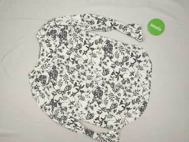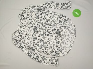 Bluzka damska z długim rękawem - Kolor: biały w czarny, kwiatowy nadruk - Krój: swobodny, lekko wydłużony tył; dekolt w kształcie litery V - Rękawy: długie z delikatnym marszczeniem/przeszyciem pr...Stan: