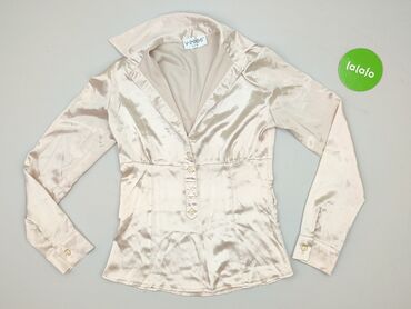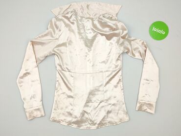 Bluzka damska z długim rękawem w kolorze ecru/kremowym. - Krój: lekko taliowany, z delikatnie wydłużonym tyłem. - Dekolt: w serek z krótką stójką. - Zapięcie: listwa z 4 guzikami z przodu. - Rękaw...