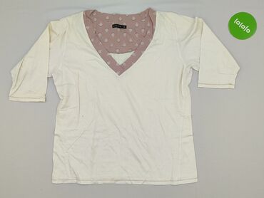 Bluzka damska SENSIS - Kolor: jasny beż/mleczny. - Rozmiar z metki: L. - Krój: prosty, lekko luźny; dekolt okrągły; długi rękaw. - Dół po lewej stronie zakończony dekoracyjną satynową tasiemką do ...