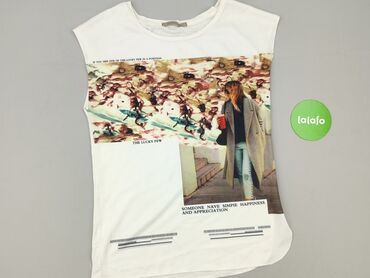 - Kolor: biały z dużym, kolorowym nadrukiem z przodu (motyw artystyczny + postać na schodach, napisy m.in. “THE LUCKY FEW”, “SOMEONE HAVE SIMPLE HAPPINESS AND APPRECIATION”, “IF YOU ARE ONE OF THE LUCKY FEW IN A POSITION”)