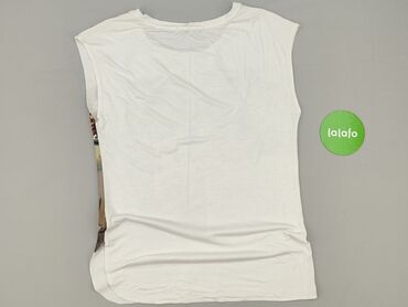 Bluzka bez rękawów Reserved - Damska, rozmiar 38 - Biała w czarny, geometryczny print - Zapięcie na guziki na całej długości - Klasyczny kołnierzyk - Przewiewny, lekki materiał - Zaokrąglony dół, ...