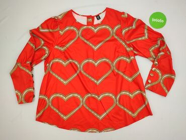 Bluzka damska SHEIN Curve - Rozmiar: 3XL (z metki) - Kolor: intensywna czerwień - Fason: kopertowy/przekładany z głębokim dekoltem V - Rękawy: krótkie, bufiaste, zdobione małymi perełkami - Dół le...
