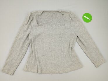 Szary krótki sweter/bluza z dzianiny w drobną, wafelkową fakturę. - Krój: luźny, krótszy (crop), rękawy raglanowe z szerokimi mankietami. - Dekolt: okrągły. - Materiał: 62% poliester, 34% rayon (w...