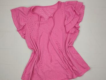 Bluzka SHEIN Curve - Rozmiar: 2XL (z metki) - Kolor: pudrowy róż - Fason: rozkloszowany, zapinany z przodu na guziki - Dekolt: w serek (V-neck) - Rękawy: krótkie, z falbanką/skrzydełka - Dodatki: ...