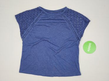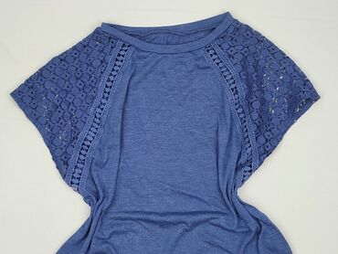 Bluzka damska SHEIN - Kolor: jasny błękit z białą koronką - Krój: luźny T‑shirt, dekolt w kształcie łagodnego V - Rękawy: krótkie, wykonane z ażurowej, kwiatowej koronki; koronkowa wstawka biegnie...