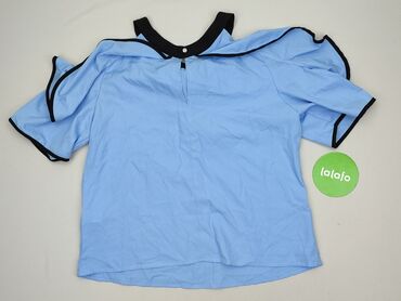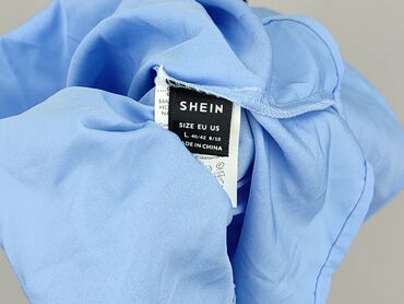 Bluzka SHEIN, rozmiar M (EU 38 / US 6) - Kolor: jasny błękit - Krój: luźniejszy, lekko zaokrąglony dół - Dekolt: w kształcie litery V z krótką stójką - Rękawy: 3/4 - Tył: karczek z zakładką dla wi...