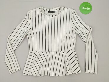 Bluzka damska SHEIN - Krój: dopasowany, długi rękaw - Dekolt: w kształcie litery V z szeroką, gładką lamówką - Wzór: biało‑czarne, poziome paski - Materiał: prążkowana, elastyczna dzianina (miękka...Stan: