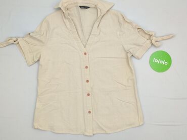Bluzka SHEIN damska, rozmiar S (EU 34, US 4) - Kolor: beżowy - Fason: luźna bluzka z kołnierzykiem i dekoltem w kształcie litery V - Rękawy: krótkie, bufiaste - Materiał: 95% poliester, 5% spandex...