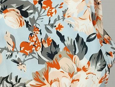- Wzór: kwiatowy all-over w odcieniach błękitu, ecru, szarości i rdzawej pomarańczy.