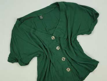 Bluzka damska SHEIN z długim rękawem - Kolor: butelkowa zieleń - Rozmiar z metki: L (EU 40/42, US 8/10) - Fason: dopasowana talia, lekko skrócona długość - Dekolt/góra: stójka z efektownym marszcz...