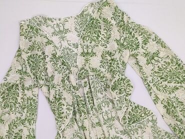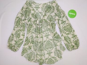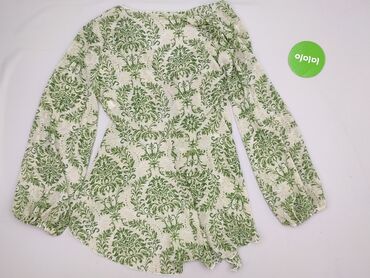 Bluzka damska SHEIN z tropikalnym nadrukiem - Marka: SHEIN - Rozmiar: S (EU 36, US 4 – metka na zdjęciu) - Krój: luźny, bez zapięcia, otwarty przód z wydłużonymi połami do wiązania; krótkie, opada...