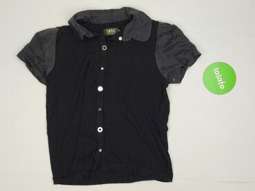 Bluzka damska SIMPLE, rozmiar z metki 38. - Kolor: czarny - Krótki rękaw z dekoracyjnymi wstawkami w białe kropeczki oraz koronką w kolorze ecru - Dekolt w serek z kołnierzykiem w groszki - Wiązan...Stan: