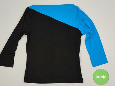 Bluzka damska SIMPLE, rozmiar 38. - Fason: z dekoltem opadającym na jedno ramię (asymetryczny). - Rękawy: długie. - Kolor: dwukolorowa – czarny korpus z kontrastowym, turkusowym panelem u góry oraz...