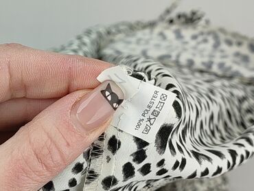 Bluzka damska z krótkim rękawem, transparentna, w panterkę (czarno-szary wzór). - Krój: luźny, oversize, lekko krótszy przód i nieco dłuższy tył. - Dekolt: okrągły z tyłu efektowna, ażurowa wstawk...