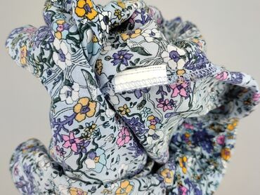 Bluzka damska z kołnierzykiem, zapinana na guziki, z krótkim rękawem (cap sleeves). Taliowany krój podkreślający sylwetkę. Wzór: kwiatowy na czarnym tle – odcienie niebieskiego, turkusu, żółtego i...