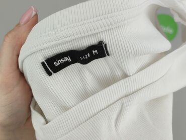 Biała bluzka Sinsay z ażurowymi falbankami - Marka: Sinsay - Rozmiar: M (z metki) - Krój: luźny, lekko rozkloszowany dół - Rękawy: bez rękawów, szerokie falbanki z ażurową koronką w kształcie list...
