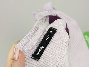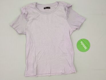 Bluzka Sinsay, rozmiar L. - Kolor: jasny liliowy/pastelowy fiolet - Fason: t-shirt z okrągłym dekoltem - Rękawy krótkie z falbankami przy ramionach - Materiał prążkowany, elastyczny i miękki w dot...