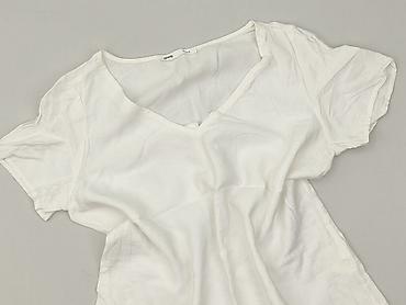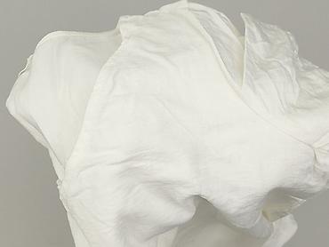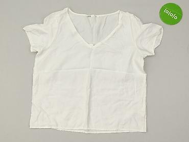 Biała bluzka damska sinsay, rozmiar L. - Krój: krótka bluzka z krótkim rękawem, lekko odcinana w talii gumką, wykończona falbanką peplum. - Dekolt: okrągły. - Detale: pionowa, dekoracyjna koronka ...
