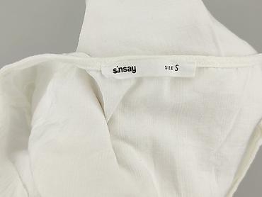 Biała damska bluzka Sinsay, rozmiar S. - Krój: luźny, tunikowy - Dekolt: w kształcie litery V bez kołnierzyka - Rękawy: długie z możliwością podpięcia na patkę (guzik) - Długość: lekko za biodra, ...