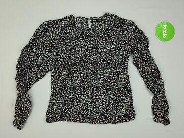 Bluzka Sinsay, rozmiar L - Krój: kobiecy top z dekoltem w kształcie litery V - Rękawy: długie, bufiasto rozszerzane - Wzór: kwiatowy na czarnym tle, odcienie niebieskiego i bieli - Materiał: 100% ...