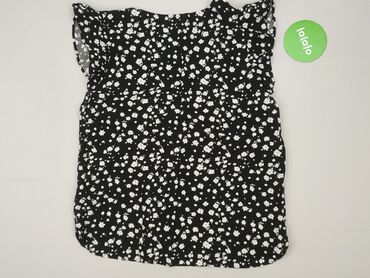 Bluzka damska Sinsay, rozmiar L. - Kolor: czarny w drobny, biały, kwiatowy wzór. - Krój: kobiecy top bez rękawów z falbanami na ramionach; dekolt w kształcie litery V; lekko zaokrąglony dół. - Mate...