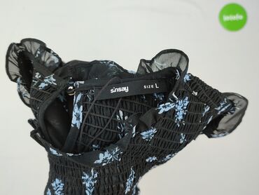 Bluzka damska Sinsay, rozmiar M. - Wzór: drobne białe kwiaty na czarnym tle (allover). - Krój: prosty, lekko luźny. - Rękawy: długie. - Dekolt: okrągły z łezką i zapięciem z tyłu. - Materiał: lekki...