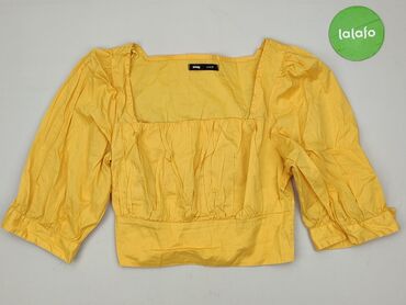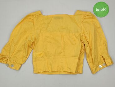 Bluzka Sinsay, rozmiar M - Krój: krótka, dopasowana koszulka z krótkim rękawem - Zapięcie: front na napy (metalowe zatrzaski) - Dekolt: okrągły - Kolor: pastelowy, jasnożółty - Materiał: prążkowan...