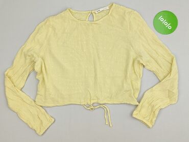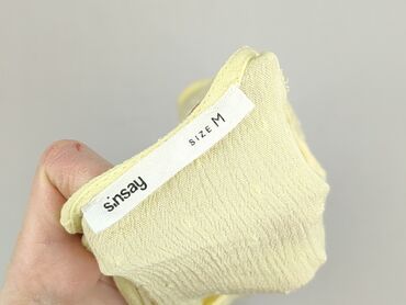 Bluzka Sinsay, rozmiar M. - Kolor: jasnożółty (pastelowy) - Krój: dopasowany, długość do pasa - Rękawy: krótkie - Dekolt: okrągły - Zapięcie: rząd metalowych nap na środku przodu - Materiał prążko...