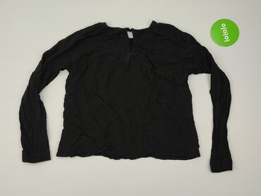 Czarna bluzka Sinsay, rozmiar L. - Krój luźny, lekko wydłużony tył - Dekolt w kształcie litery V z zakładką z przodu - Długie rękawy zakończone mankietami zapinanymi na guzik - Delikatne marszczen...