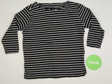 Bluzka damska Sinsay, rozmiar S. - Krój: dopasowany, z okrągłym dekoltem - Rękaw: do łokcia (3/4 krótszy) - Wzór: czarno-białe, poziome paski - Materiał: elastyczna, prążkowana dzianina (miękka, r...