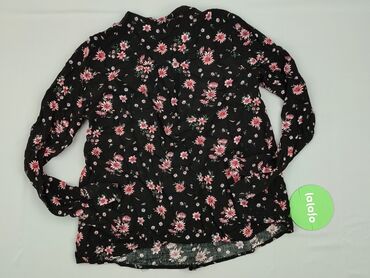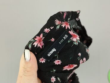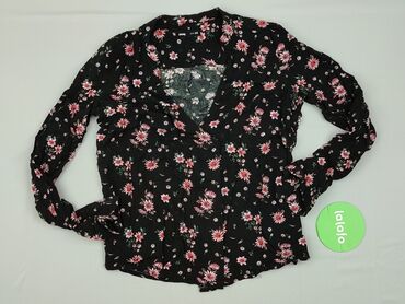 Bluzka Sinsay damska - Rozmiar: L (z metki) - Skład: 100% wiskoza – lekka, przewiewna tkanina - Kolor/wzór: czarne tło w drobny, nieregularny, kwiatowo-abstrakcyjny nadruk w odcieniach bieli, czer...