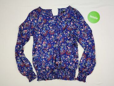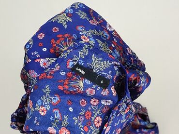 Bluzka damska Sinsay, rozmiar S. - Kolor: granatowy z kwiatowym nadrukiem (zielone gałązki, drobne różowe kwiatuszki) - Krój: taliowana z marszczeniem/gumką w pasie, lekko rozkloszowany dół - Ręka...