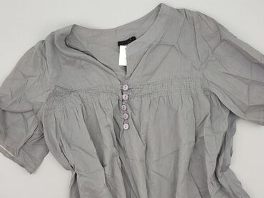 Bluzka damska z miękkiej, marszczonej tkaniny (double gauze) – kolor ecru/kość słoniowa. - Skład: 100% bawełna (metka w środku) - Rozmiar z metki: L - Krój: luźny, przewiewny - Rękaw: krótki - Dek...