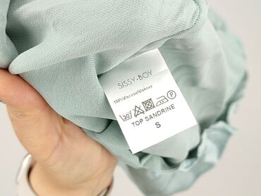 Krótki rękawBluzka damska Sissy-Boy w kolorze jasnozielonym, wykonana w 100% z wiskozy. Charakteryzuje się krótkimi rękawami i dekoltem w kształcie litery V, co nadaje jej uniwersalnego charakteru. Materiał jest lekki i przewiewny, idealny na cieplejsze dni. Fason bluzki jest luźny, co zapewnia komfort noszenia i swobodę ruchów. Jest to wszechstronny element garderoby, który można stylizować na wiele sposobów, zarówno do codziennych, jak i bardziej formalnych zestawień. Odpowiednia do noszenia w różnych okolicznościach, od casualowych spotkań po bardziej eleganckie wyjścia.