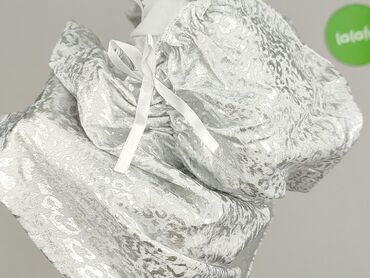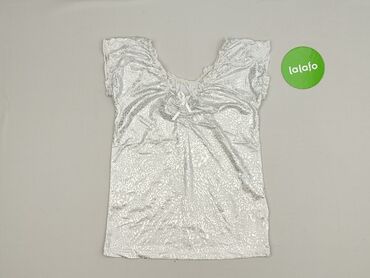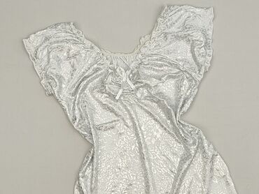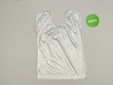Bluzka damska MODELLI - Kolor: jasnoszary/srebrzysty - Fason: luźny, zwiewny, lekko rozkloszowany; krótkie, półprzezroczyste rękawki - Dekolt: okrągły, ozdobny kołnierz z naszytymi metalowymi apli...