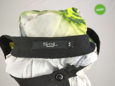 Bluzka damska S.O.L Design, rozmiar 38. - Krój: luźna, lekko bombkowa na dole; rękaw 3/4 z delikatną gumką przy mankiecie. - Dekolt: okrągły z czarną lamówką i wiązaniem w serek. - Materiał: cienk...