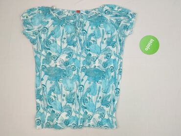 Bluzka damska s.Oliver, rozm. 40 - Kolor: odcienie turkusu/niebieskiego - Wzór: roślinny/abstrakcyjny nadruk z przodu - Krój: luźny, z lekko dłuższym tyłem; dekolt w serek - Rękawy: krótkie, opada...