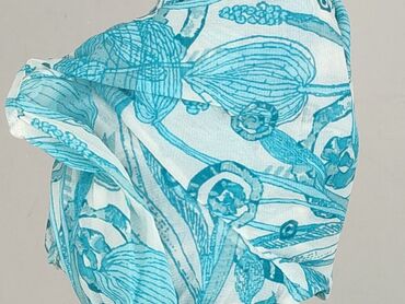 - Wzór: turkusowo-błękitny roślinny/kwietny nadruk na białym tle.