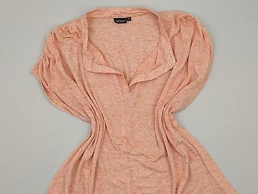 Bluzka damska w kolorze brzoskwiniowym - Krój: prosty, lekko zwężany, krótkie rękawy - Dekolt: okrągły; z tyłu małe wycięcie w kształcie łezki zapinane na pętelkę - Przód: dekoracyjny pionowy pane...