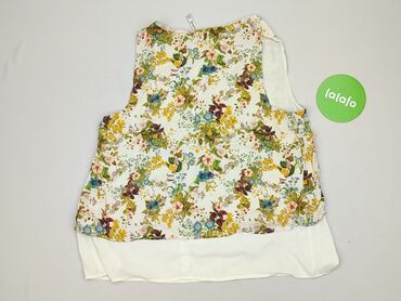 Bluzka damska w kwiaty, rozmiar S - Kolor: kremowo-biały z drobnym, wielobarwnym, akwarelowym wzorem kwiatowym (róże, błękity, zielenie, żółcie). - Krój: luźny, lekko wydłużony tył; półokrągły dek...